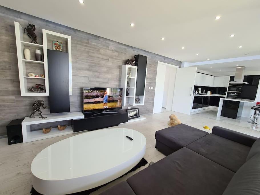 Three-Bedroom Villa. Guests will find a stovetop, a refrigerator, a dishwasher and an oven in the kitchen. The villa also features a barbecue. The spacious air-conditioned villa offers a flat-screen TV with streaming services, a washing machine, a private entrance, a tea and coffee maker as well as sea views. The unit has 5 beds.