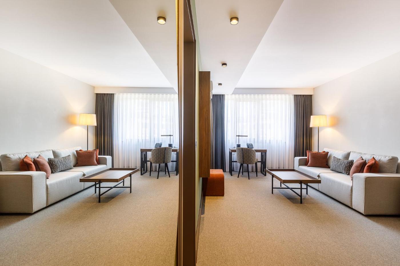 Executive Deluxe Suite. Featuring air conditioning, a living room with a seating area and a flat-screen TV with cable and satellite channels. The suite features 1 big bathroom or 2 separate bathrooms with free toiletries, a shower cabin and a bathtub. Complimentary fruits and water are served one-time upon arrival. Please note that this suite is fitted with either a king-size bed or 2 single beds. If you arrive with children, please inform the property about their number and age. You can use the Special Requests box when booking or contact the property directly. ;