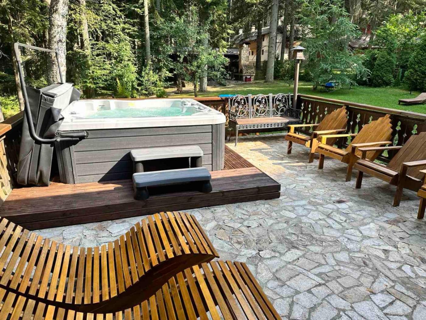 Deluxe Villa. Guests will have a special experience as this villa offers a pool with a view, a hot tub and a sauna. Featuring a private entrance, this villa comprises 2 living rooms, 5 separate bedrooms and 3 bathrooms with a shower and a hairdryer. Guests will find a stovetop, a refrigerator, a dishwasher and kitchenware in the kitchen. The villa also provides guests with a barbecue. Boasting a terrace with garden views, this villa also provides a washing machine and a flat-screen TV with satellite channels. The unit offers 7 beds and 1 futon.