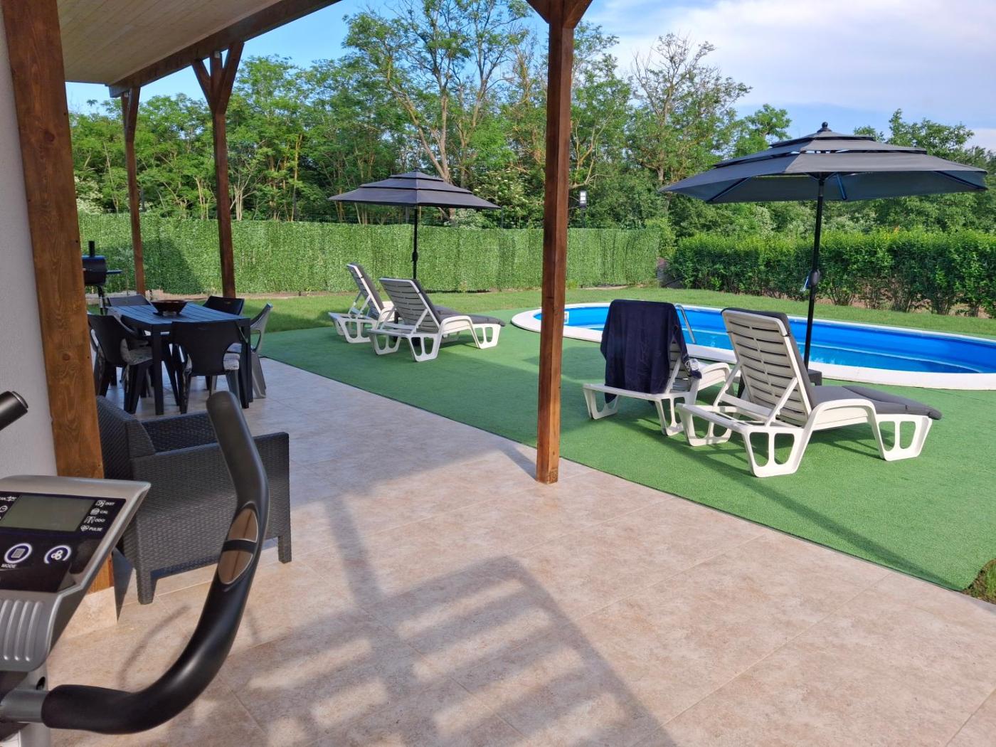Holiday Home. This holiday home features a pool with a view. Boasting a private entrance, this air-conditioned holiday home features 1 living room, 2 separate bedrooms and 2 bathrooms with a shower and a hairdryer. Guests will find a stovetop, a refrigerator, a dishwasher and kitchenware in the fully equipped kitchen. The holiday home also comes with a barbecue. Featuring a terrace with garden views, this holiday home also features a washing machine and a flat-screen TV. The unit has 4 beds and 1 futon.