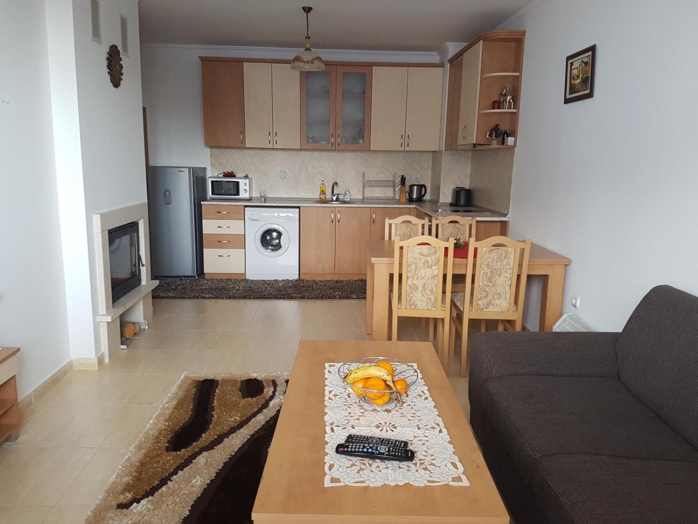 One-Bedroom Apartment. This apartments standout feature is the fireplace. This apartment is comprised of 1 living room, 1 separate bedroom and 1 bathroom with a bath. Guests can make meals in the kitchen that is fitted with a refrigerator, kitchenware and a microwave. Featuring a terrace, this apartment also offers a washing machine, an electric kettle and a flat-screen TV. The unit offers 2 beds.