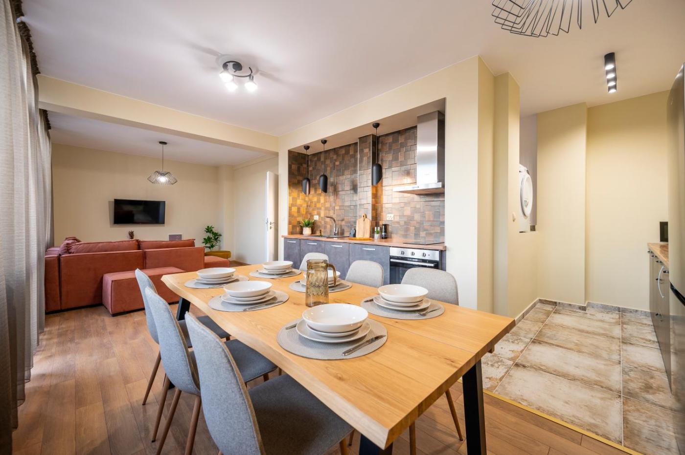 All units at the apartment complex come with air conditioning, a seating area, a flat-screen TV with streaming services, a kitchen, a dining area and a private bathroom with slippers, a shower and a hair dryer. A dishwasher, an oven and microwave are also offered, as well as a coffee machine and a kettle. At the apartment complex, the units have bed linen and towels.