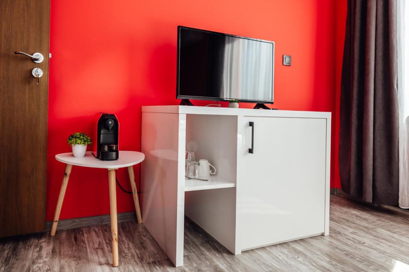 Family Studio. The studio offers air conditioning, a tea and coffee maker, as well as a private bathroom boasting a shower. The studios kitchenette, which has a refrigerator and kitchenware, is available for cooking and storing food. The studio provides a flat-screen TV, a dining area, a wardrobe and heating. The unit has 3 beds.