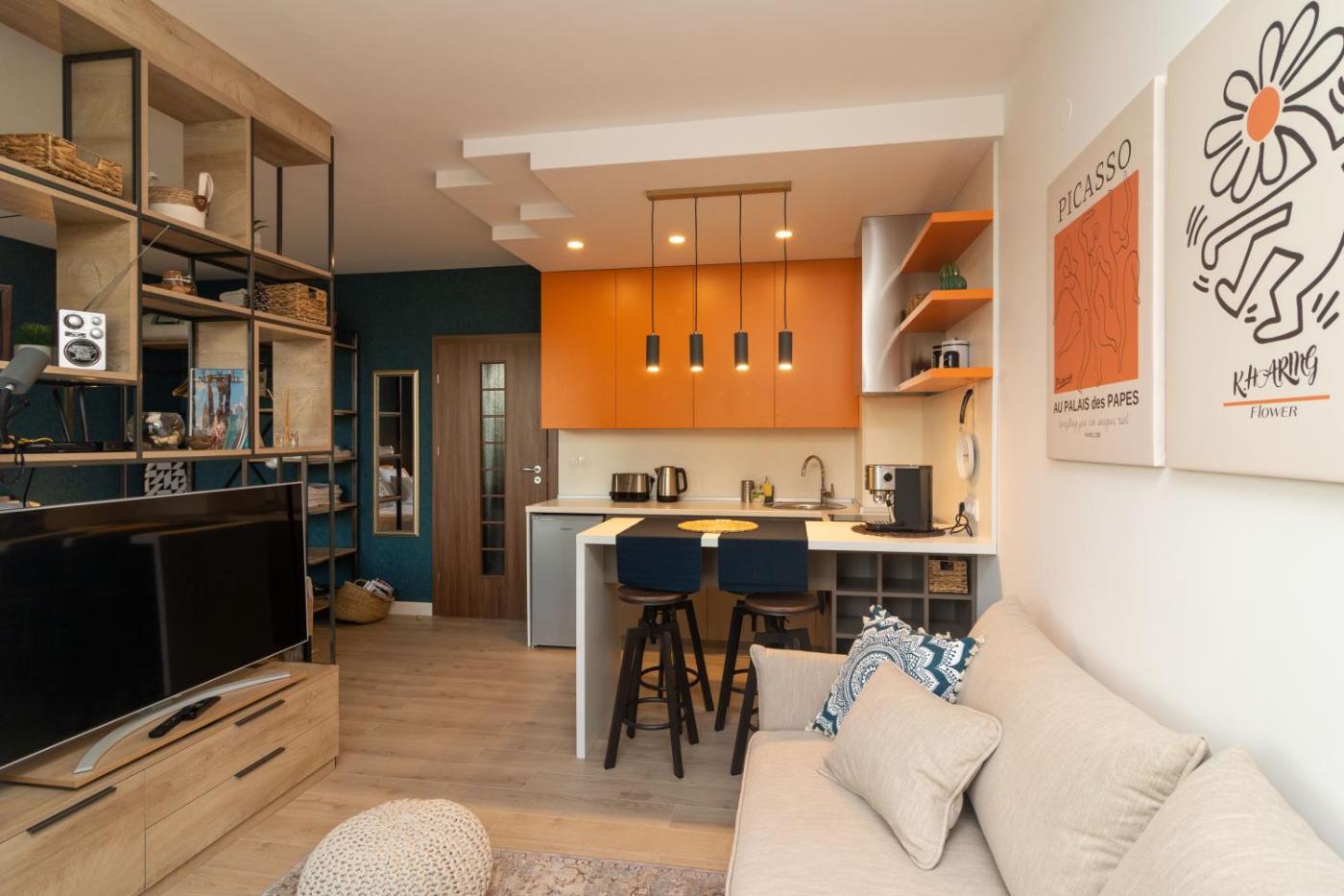 One-Bedroom Apartment. Boasting a private entrance, this air-conditioned apartment includes a kitchen, 1 bedroom and 1 bathroom with a walk-in shower and a bidet. In the kitchen, guests will find a stovetop, a refrigerator, kitchenware and an oven. This apartment has a washing machine, flat-screen TV with streaming services, city views, as well as chocolate for guests. The unit has 1 bed.