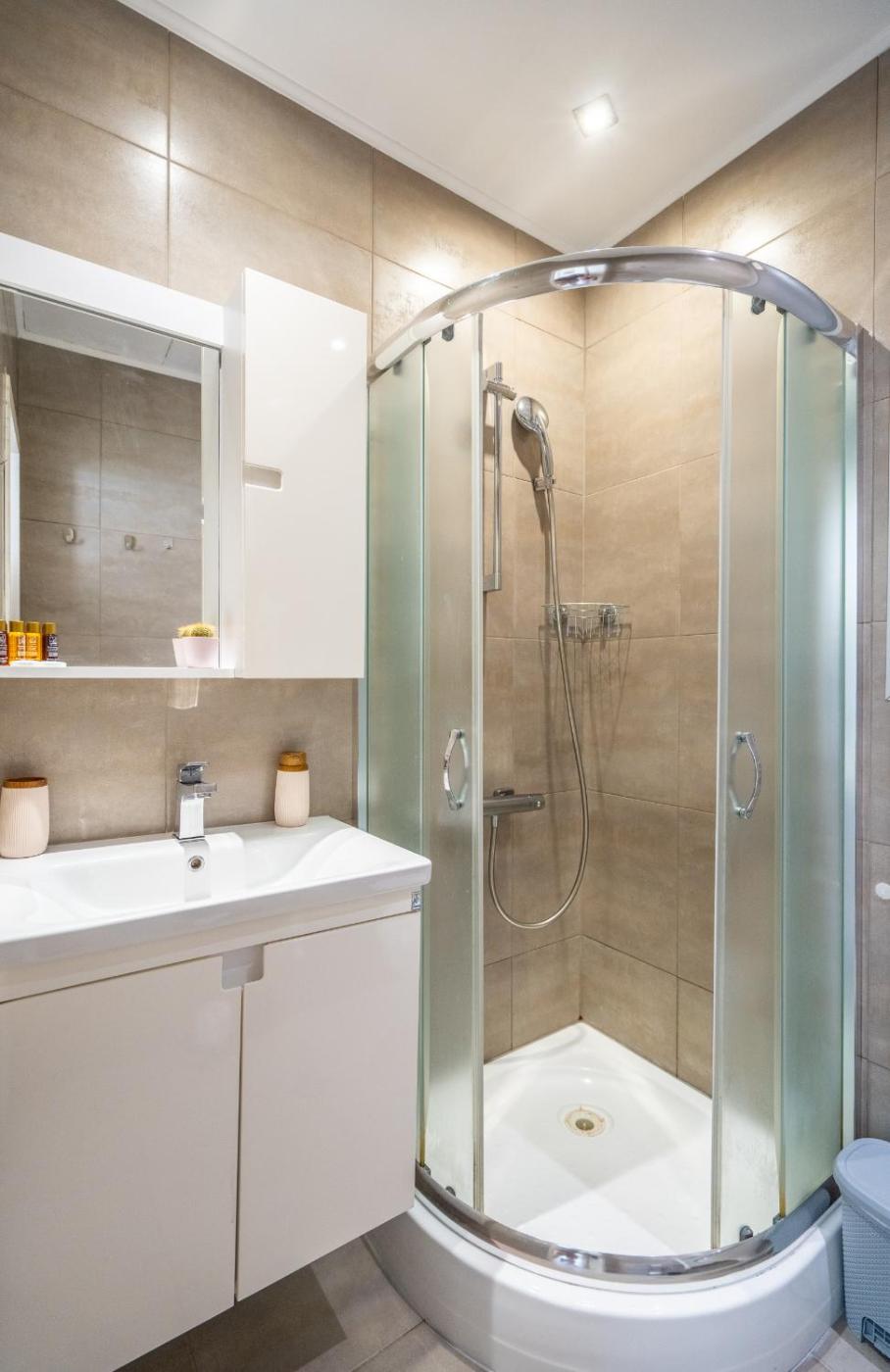 One-Bedroom Apartment. Boasting a private entrance, this air-conditioned apartment features 1 living room, 1 separate bedroom and 1 bathroom with a shower and a hairdryer. The well-fitted kitchen has a stovetop, a refrigerator, a dishwasher and kitchenware. The apartment features parquet floors, a seating area with a flat-screen TV, a washing machine, a coffee machine, as well as a dining area. The unit has 2 beds.