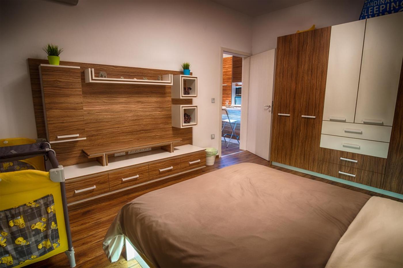 Deluxe Apartment. Boasting a private entrance, this air-conditioned apartment features 1 living room, 1 separate bedroom and 1 bathroom with a walk-in shower and a bidet. The fully equipped kitchen has a stovetop, a refrigerator, kitchenware and an oven. The spacious apartment features a flat-screen TV with streaming services, a washing machine, soundproof walls, a tea and coffee maker as well as city views. The unit has 3 beds.