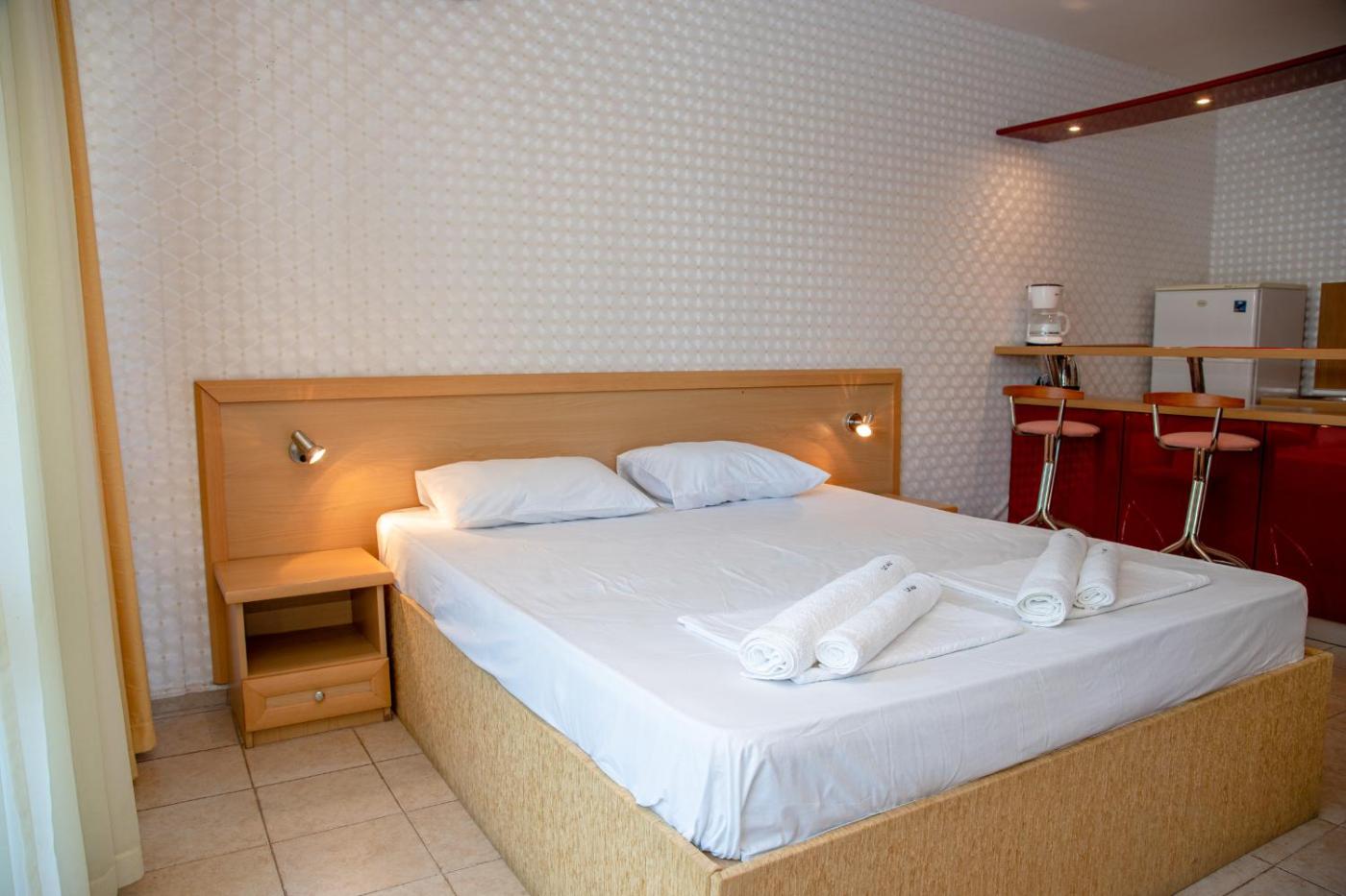 Studio with Balcony. Meals can be prepared in the well-fitted kitchen, which comes with a stovetop, a refrigerator, kitchenware and a microwave. The spacious studio provides air conditioning, a coffee machine, a balcony with pool views as well as a private bathroom featuring a shower. The unit offers 2 beds.