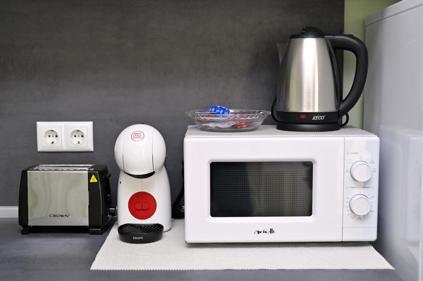 One-Bedroom Apartment. Featuring a private entrance, this air-conditioned apartment is comprised of 1 living room, 1 separate bedroom and 1 bathroom with a walk-in shower and a hairdryer. Guests can make meals in the kitchen that is fitted with a stovetop, a refrigerator, kitchenware and an oven. This apartment features a washing machine, flat-screen TV with streaming services, ancourtyard view, as well as chocolate for guests. The unit offers 1 bed.