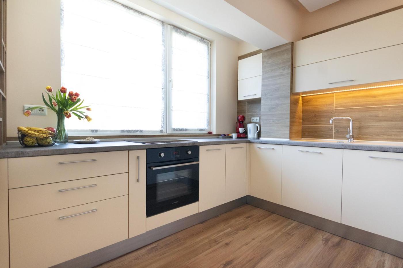 One-Bedroom Apartment. This air-conditioned apartment is comprised of 1 living room, 1 separate bedroom and 1 bathroom with a shower. Guests can make meals in the kitchen that comes with a stovetop, a refrigerator, an oven and a tea and coffee maker. This apartment features a washing machine, flat-screen TV, city views, as well as winechampagne for guests. The unit offers 2 beds.