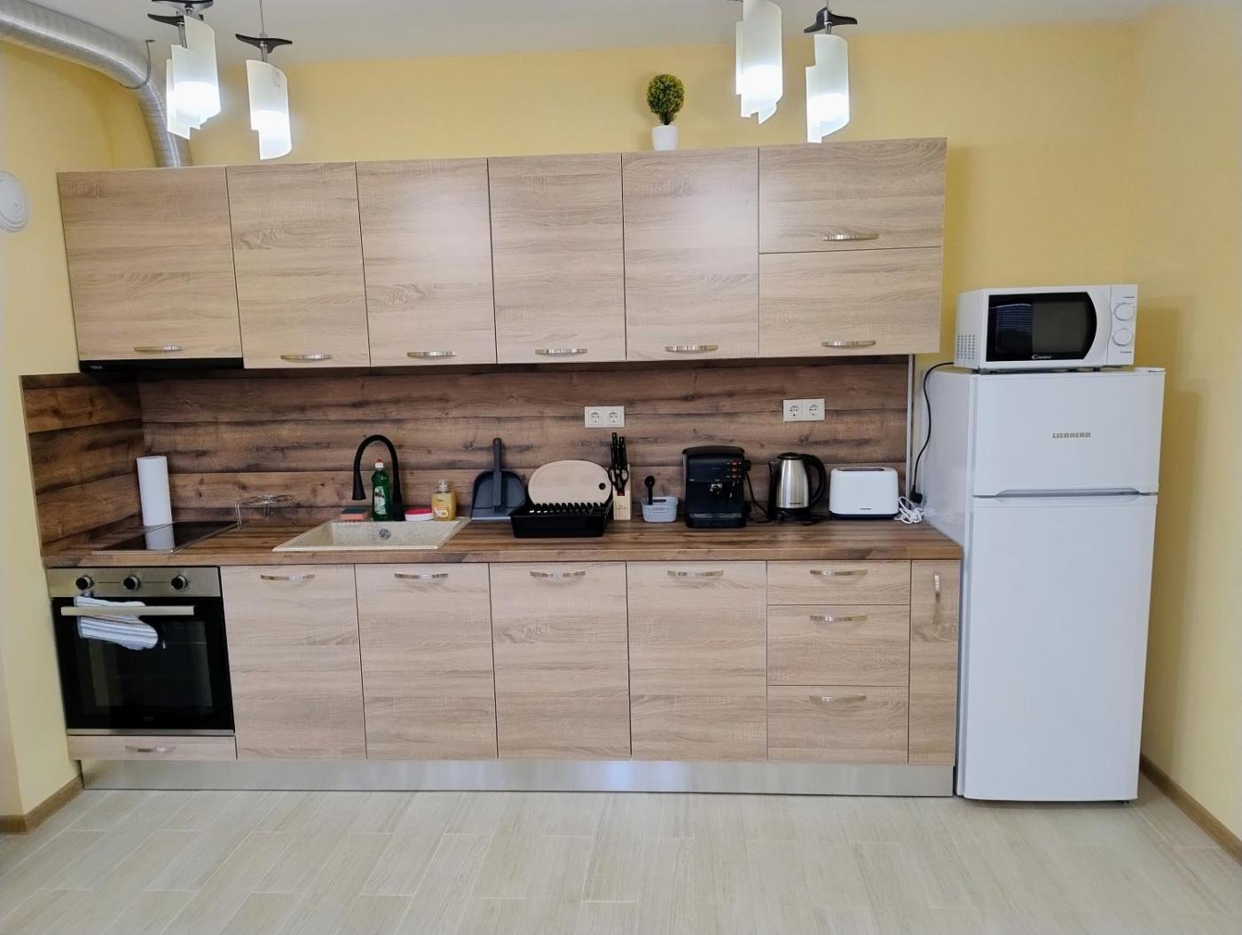 Делукс студио Север. In the fully equipped kitchenette, guests will find a stovetop, a refrigerator, kitchenware and an oven. The spacious studio offers air conditioning, a tea and coffee maker, a terrace with ancourtyard view as well as a private bathroom boasting a shower. The unit has 3 beds.